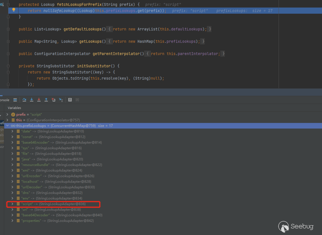 從2.4版到2.7版,默認的Lookup實例集包括可能導致任意代碼執行或與遠程服務器聯系的插值器。如公告中提到“script” 可使用JVM腳本執行引擎(javax.script)執行表達式,若使用了不受信任的配置值,在受影響的版本中使用插值默認值的應用程序就很可能受到遠程代碼執行的影響。
