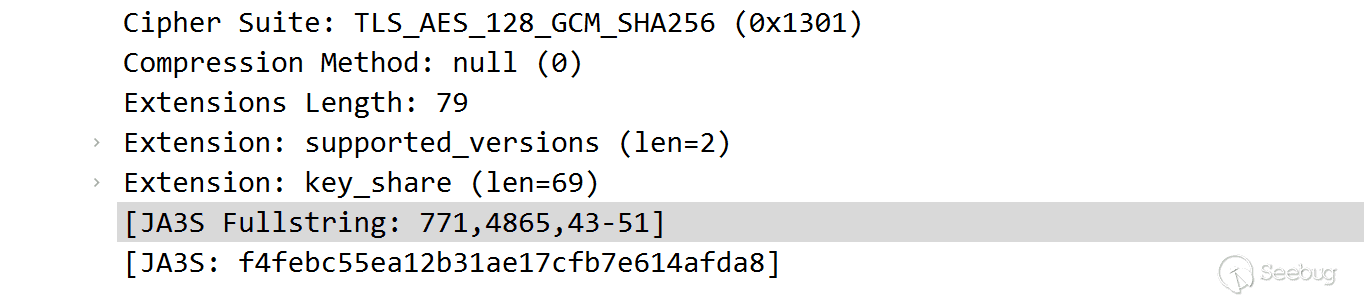 本來 ja3/ja3s 指紋不算是什么很強的特征,因為它只是一個tls握手包的hash值,ja3s是被動流量,jarm是主動探測,這個指紋取決于你的tls所使用的參數,也就是說完全有可能別人寫的https服務也和cs的listener撞上了,但是我們不能不修改,因為放著這樣一個特征不去管也會成為可能突破口,修改的辦法也很簡單,在nanohttpd服務中,修改SSL相關的任意參數就能達到效果。