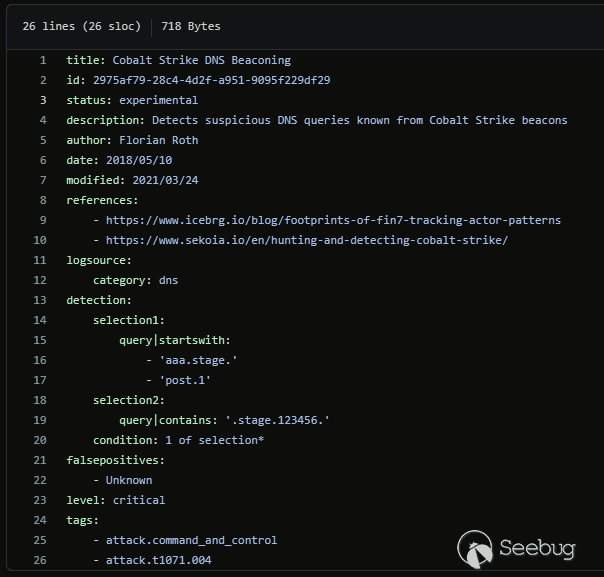 根據開源的sigma檢測規則,上面公開了一些關于cs beacon的特征,像是cs默認證書以及檢測被公開的一些profile配置,這里提幾個實戰中可能遇到的: