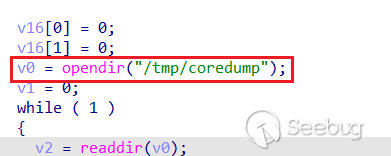 接下來,我們需要分析unifyframe-sgi.elf為何會出現段錯誤,大概率是由于缺少一些文件或目錄所導致的。首先,發現此時/tmp/uniframe_sgi中已經存在record文件夾,但并未創建sgi.log日志文件,進入unifyframe-sgi.elf的主函數,容易定位到reserve_core函數,其中需要打開/tmp/coredump目錄,但這個目錄此時是不存在的,因此造成了段錯誤。