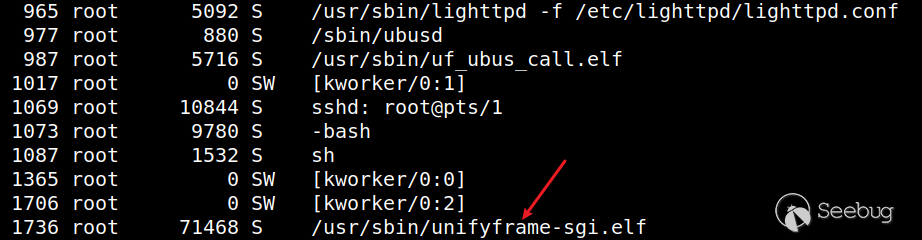 此時進程中也有/usr/sbin/unifyframe-sgi.elf程序在運行。