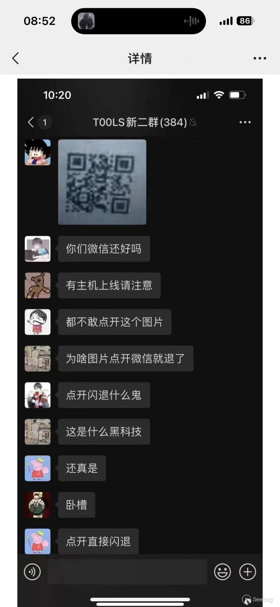 在四月份的時候出了那么一個新聞,說微信有一個點擊圖片就崩潰的 bug,當時各大微信群里都在傳播導致手機各種閃退。