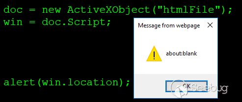 這個 ActiveXObject 創建了像 WebBrowser control 這樣的東西(基本類似于 iframe),==并返回對其 document 對象的引用==。要想訪問 window 對象,我們要使用之前的 parentWindow 或者 Script,因為此處不支持 defaultView 。