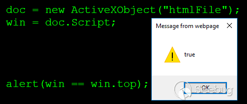 由此我們得出結論,ActiveXObject 的 window 是不同于主窗口的,這意味著它有自己的 window。我想知道現在誰是它的頂部(top)。難道 ActiveXObject 認為它在頂部?