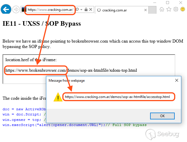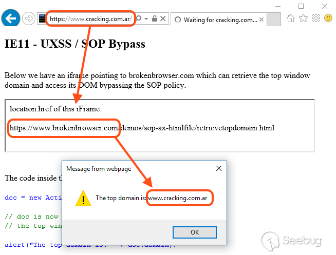 <iframe src="https://www.brokenbrowser.com/demos/sop-ax-htmlfile/retrievetopdomain.html"></iframe>