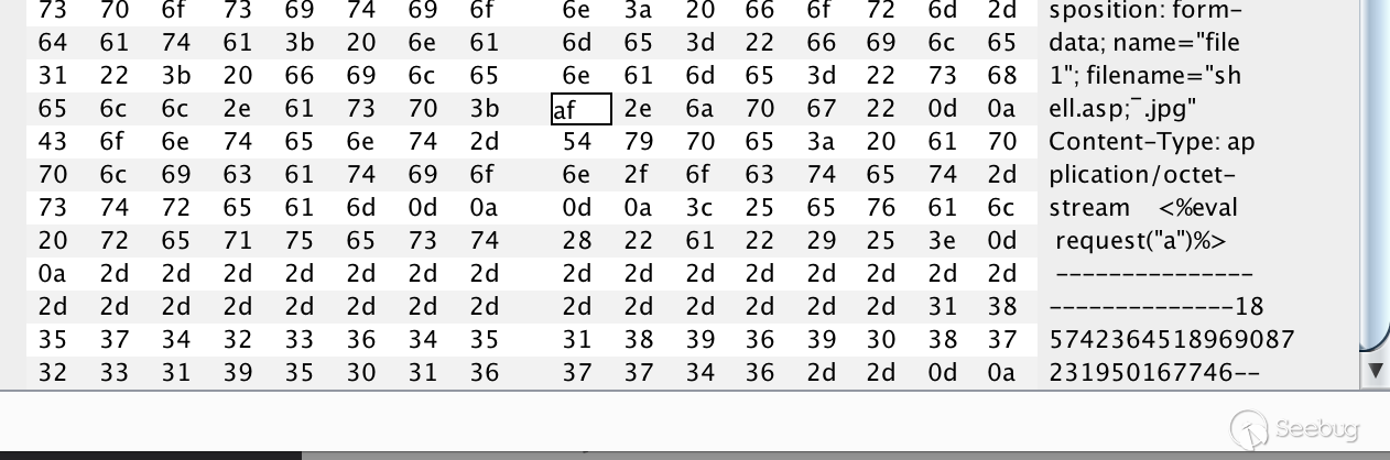 正常的upload請求都是以上這樣,然而這個格式也并非強制性的,在IIS6.0下如果我們換一種書寫方式,把filename放在其他地方: