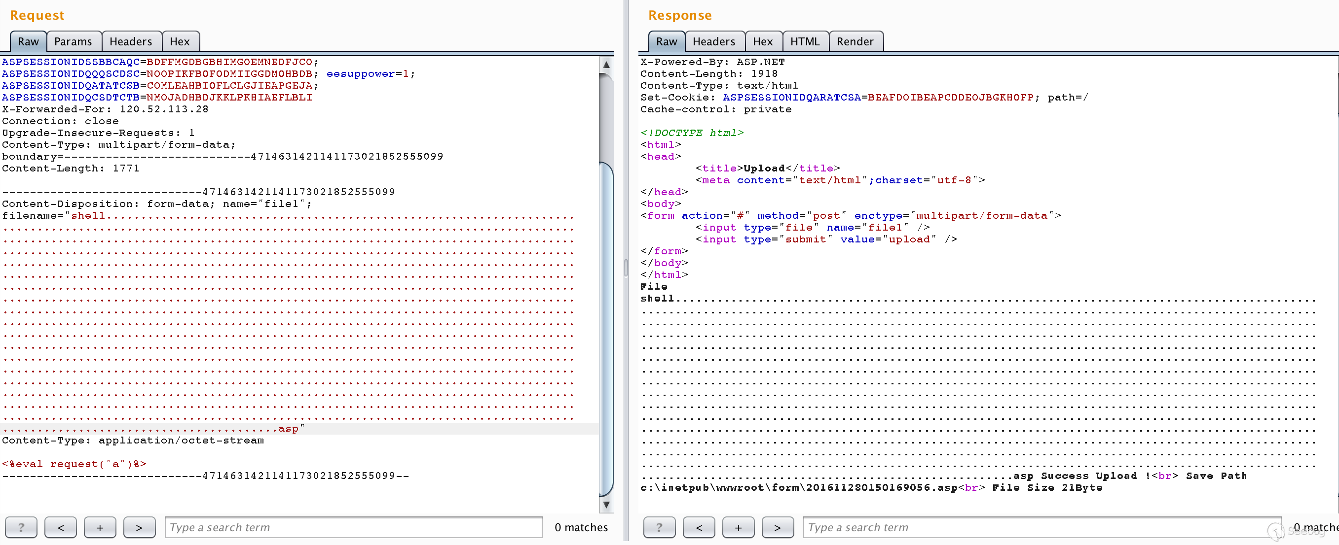 Content-Disposition: form-data; name="file1"; filename="shell.asp"
