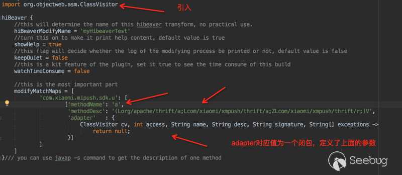 Android gradle編譯插件hibeaver結合Java AOP編程中對于大名鼎鼎的ASM.jar的應用,和Android gradle 插件提供的最新的Transform API,在Apk編譯環節中、class打包成dex之前,插入了中間環節,依據開發者的配置調用ASM API對項目所依賴的jar進行相應的修改,從而可以比較高效地實現上面的Hook需求。 源碼地址:https://github.com/BryanSharp/hibeaver