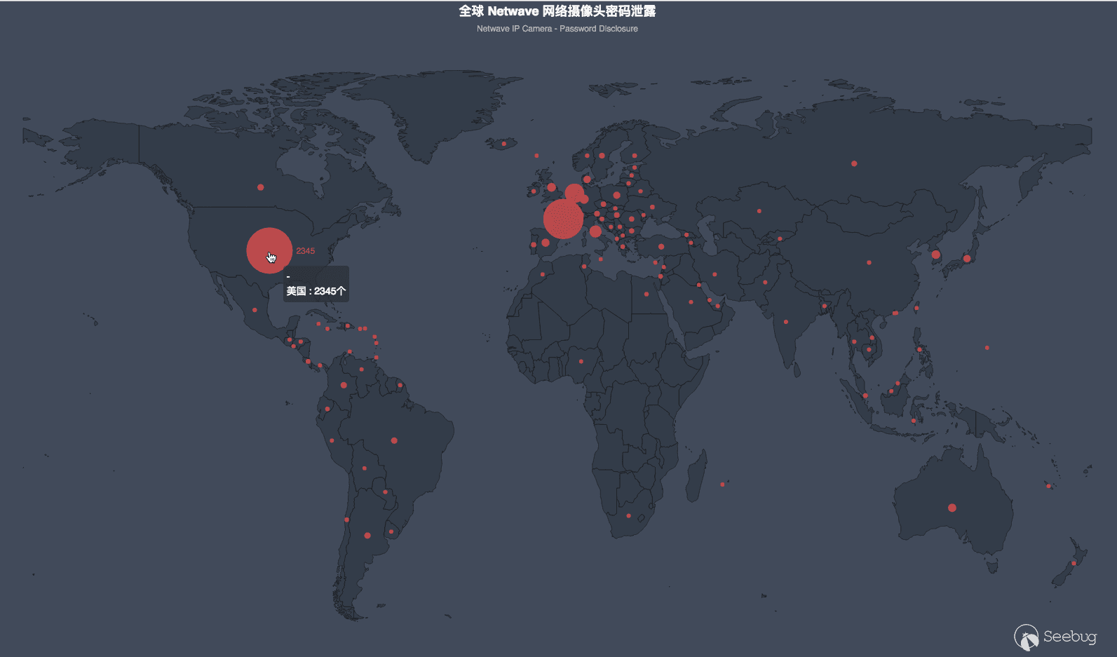 這個世界范圍內存在攝像頭密碼泄漏的分布圖。