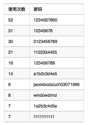 密碼用的最多TOP 10