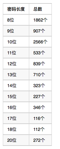 看的出大眾還是使用8位、10位的密碼較多。