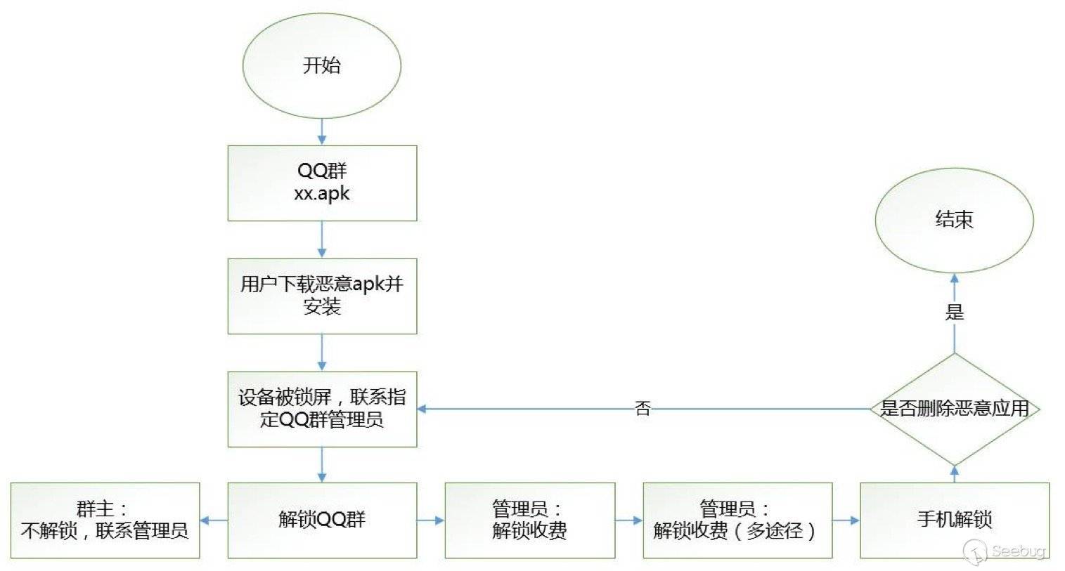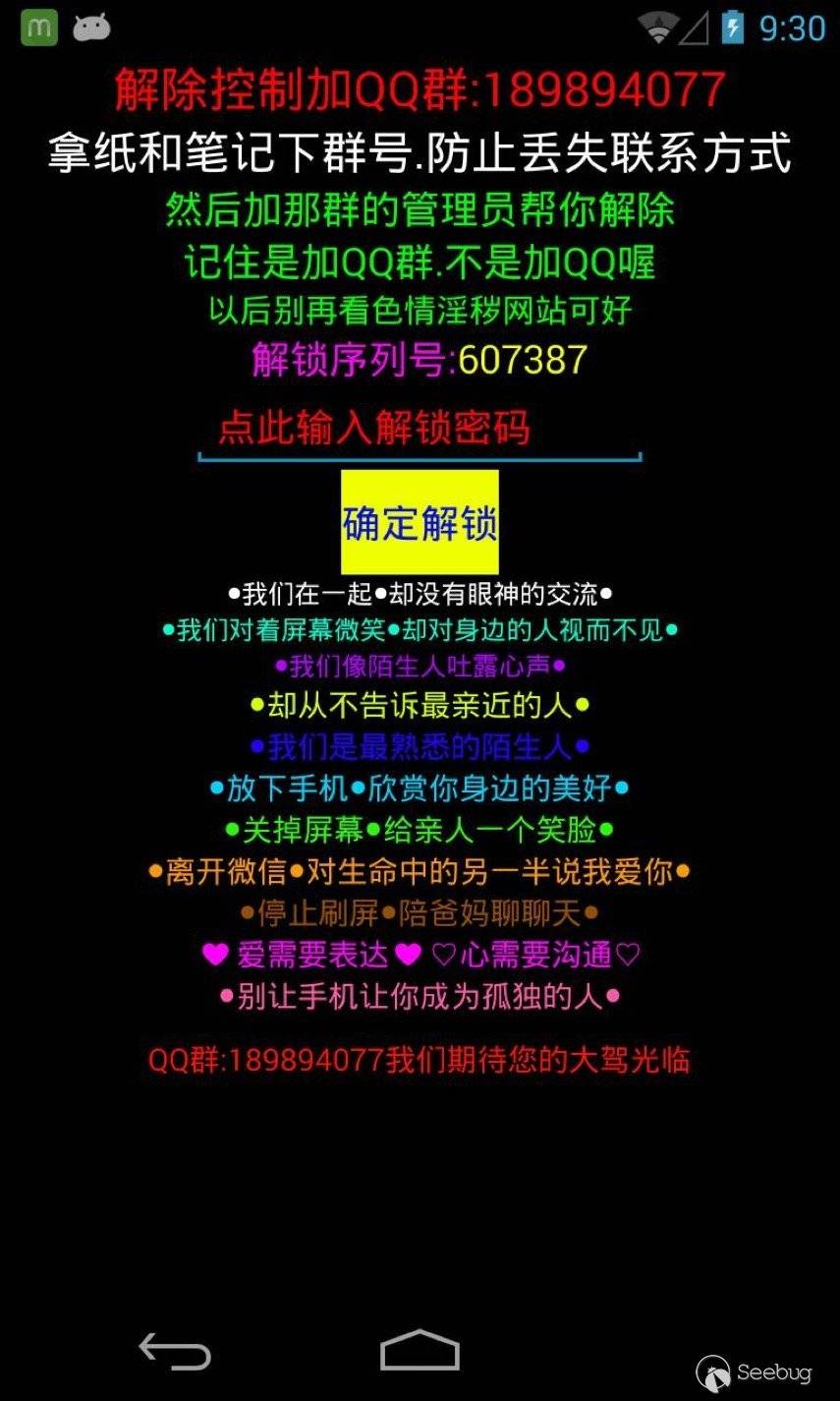 惡意鎖屏敲詐勒索的事件中,所安裝的應用均來自QQ群,論壇等非正規渠道,而這些渠道并不具備大型應用市場相對嚴格的審核制度。