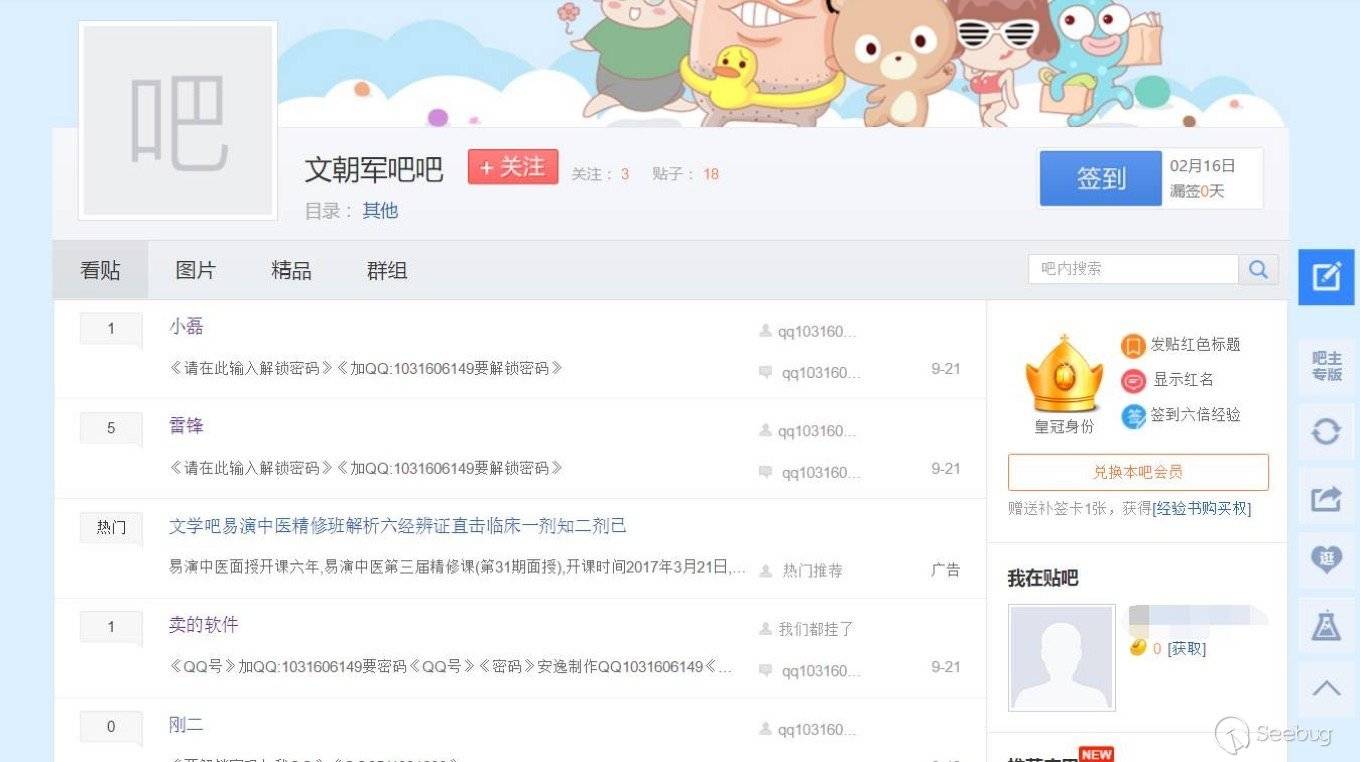 與其他敲詐勒索團伙不同的是,這個團伙在百度貼吧中專門建了一個貼吧進行自己的解鎖宣傳。雖然貼吧排名不高,帖子數量少的可憐,但是仍然可以通過其中幾個解鎖管理員的QQ搜索到。