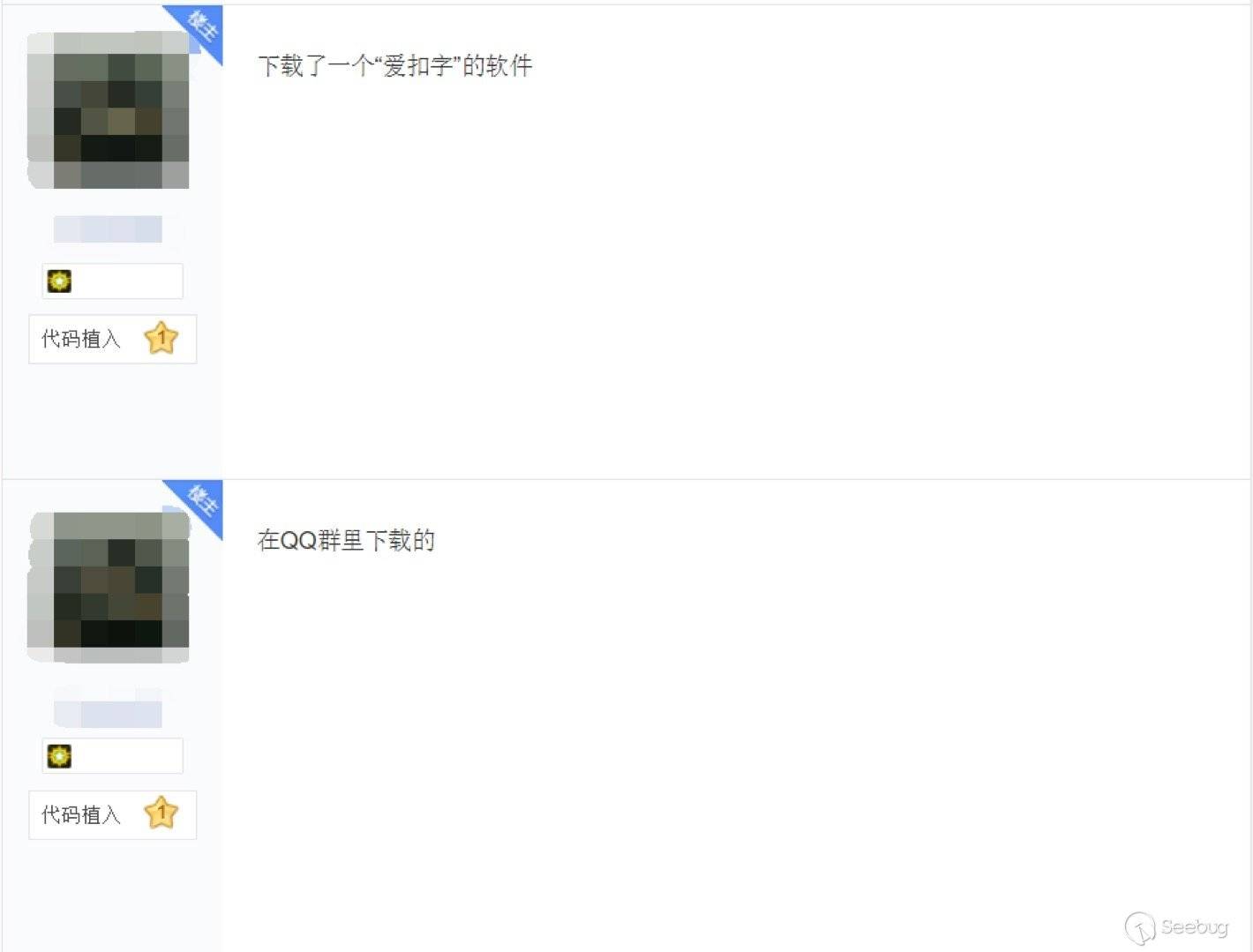 在某社區平臺,有安卓用戶稱在QQ群中下載了“愛扣字”這款應用,導致手機被惡意鎖住,無法正常使用。
