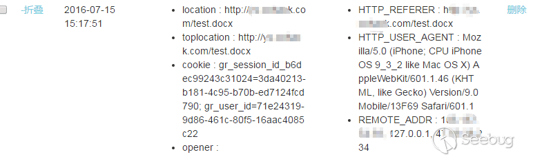 - 受害者(比如:HR或者獵頭)登錄招聘網站且使用iPhone或者iPad上的Safari在線打開該簡歷中的“博客鏈接”,那么此時攻擊者很可能就成功獲取了受害者的該網站cookie之類的信息