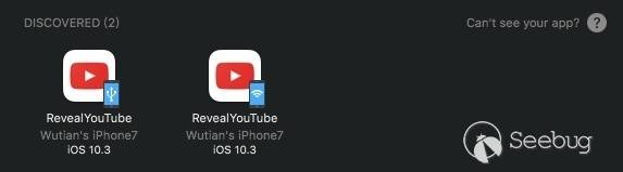 之前發過一個 “iOS 10.3 使用 Reveal 調試 Youtube” 的微博,我就用這個來舉例吧。
