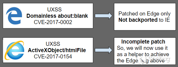 注:分別對應譯文《 UXSS on Microsoft Edge – Adventures in a Domainless World 》和《SOP bypass / UXSS on IE11 htmlFile》