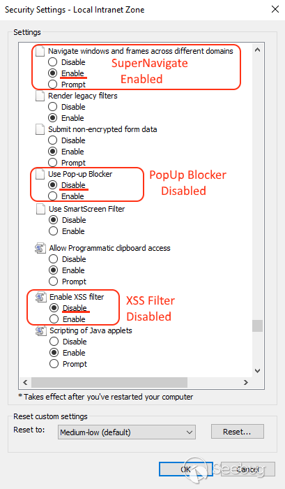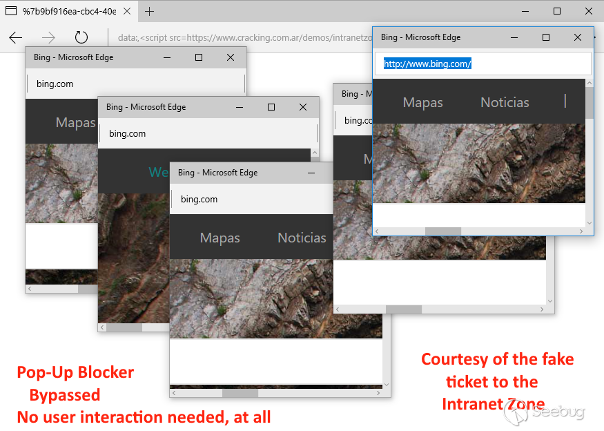 不錯!請牢記,只有在內聯網域運行時,這些 PoC 才會生效。實際上,稱之為“繞過”是不正確的,因為這是內聯網的默認行為。我們所做的是將域設置為限制較少的區域,然后就能自由發揮了。如此而已。但還有一點,超級導航(SuperNavigate)。你可知它的存在?它允許攻擊者更改任何窗口/ iframe的URL,而無視其域。
