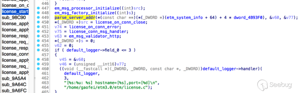 通過逆向分析,我們找到了解析license server的相關代碼: