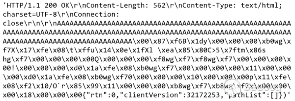 觸發漏洞時返回的HTTP響應數據如下所示: