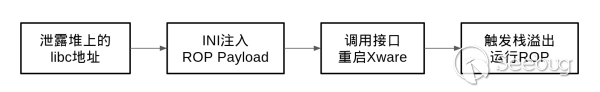 最終,只要我們調用重啟Xware的接口,Xware就會重新解析INI配置文件,并在這個過程中觸發棧溢出,從而執行我們的ROP代碼。
