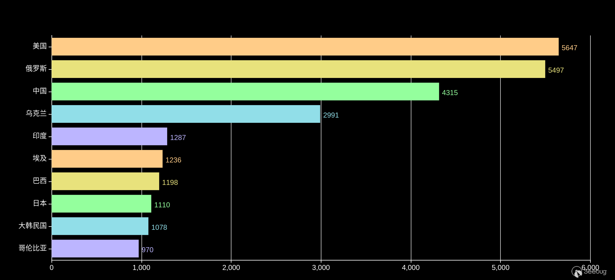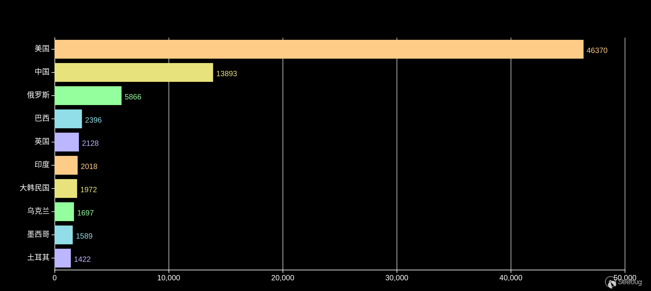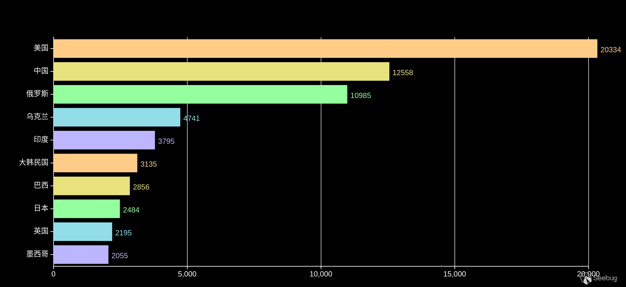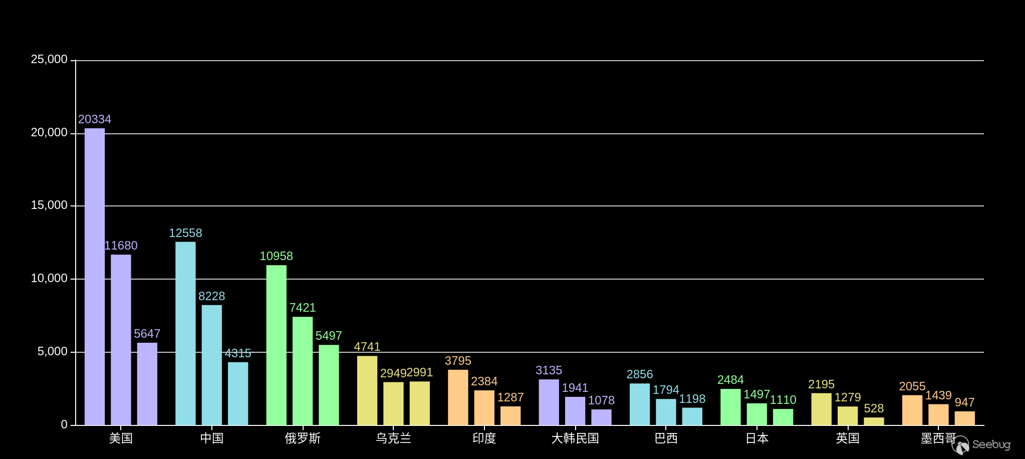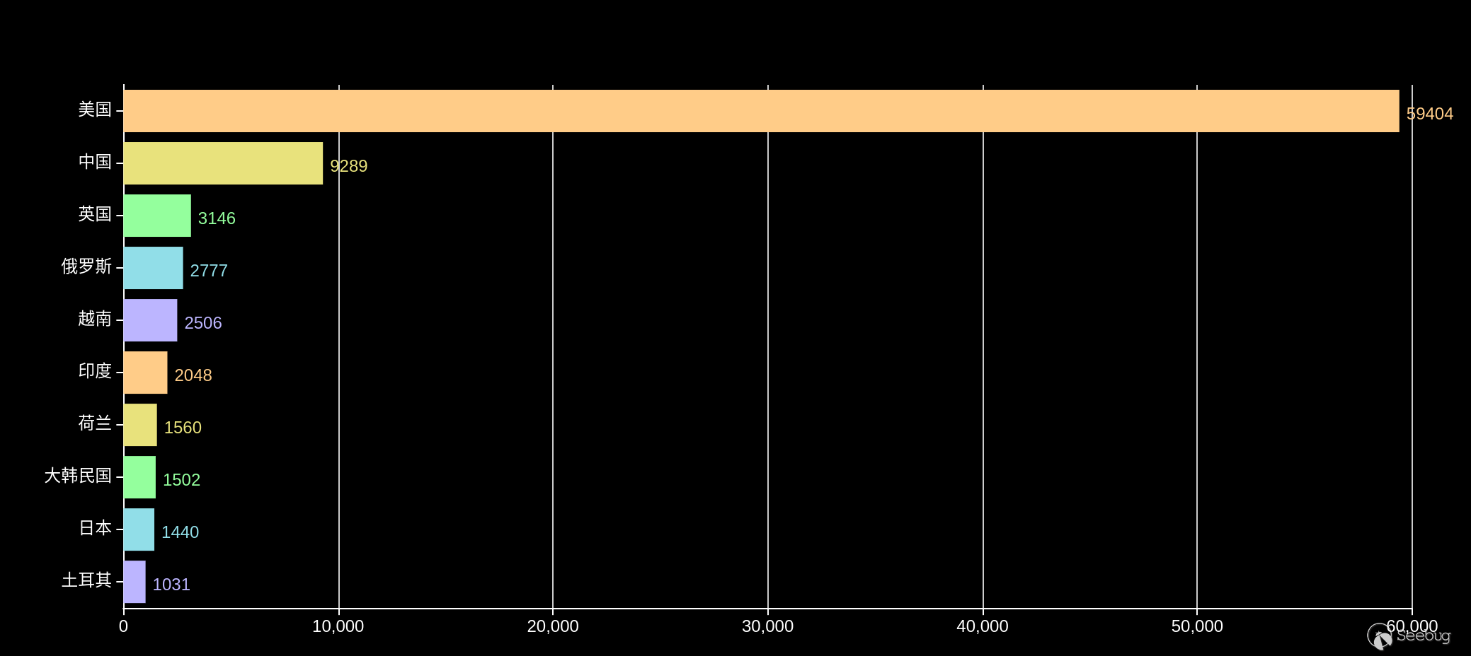 2017 年 5 月 2 日,第二輪針對 Doublepulsar 后門植入情況的探測結束,全球共有 107,163 臺設備被植入后門,其國家分布如下: