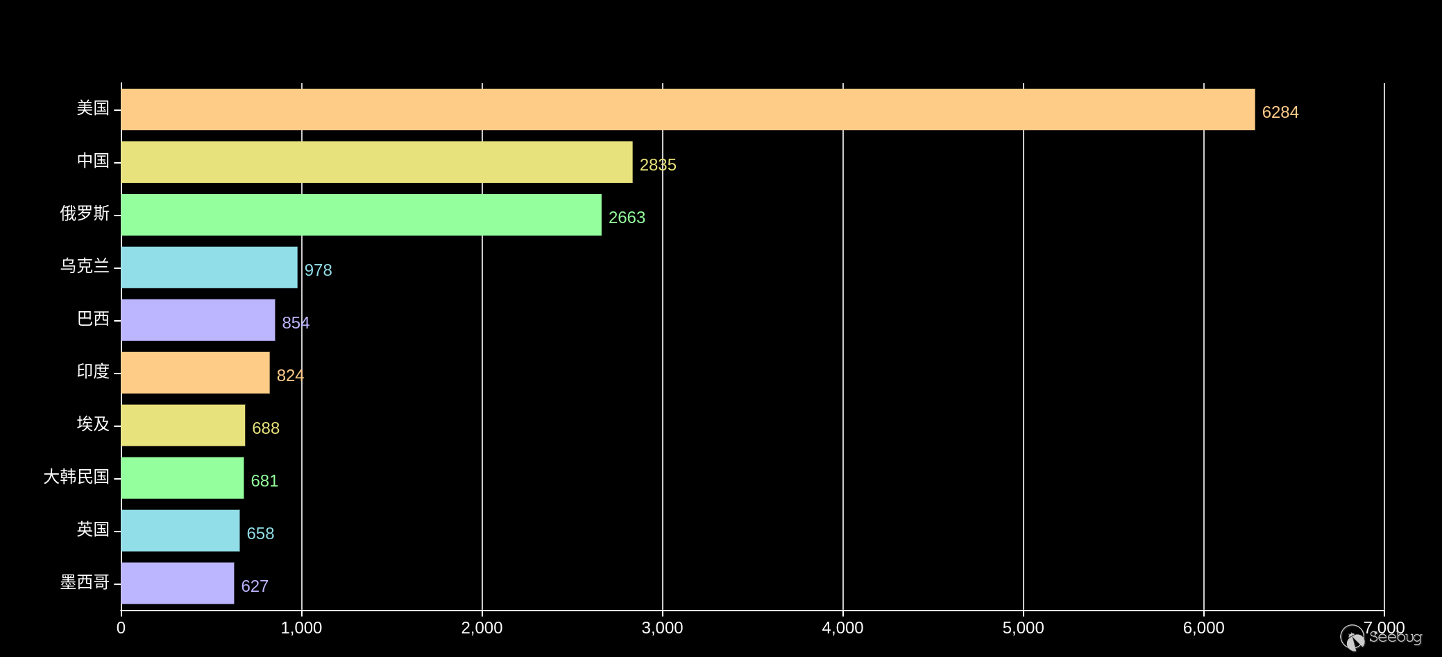 2017 年 5 月 7 日,第三輪針對 Doublepulsar 后門植入情況的探測結束,全球共有 26,975 臺設備被植入后門,其國家分布如下: