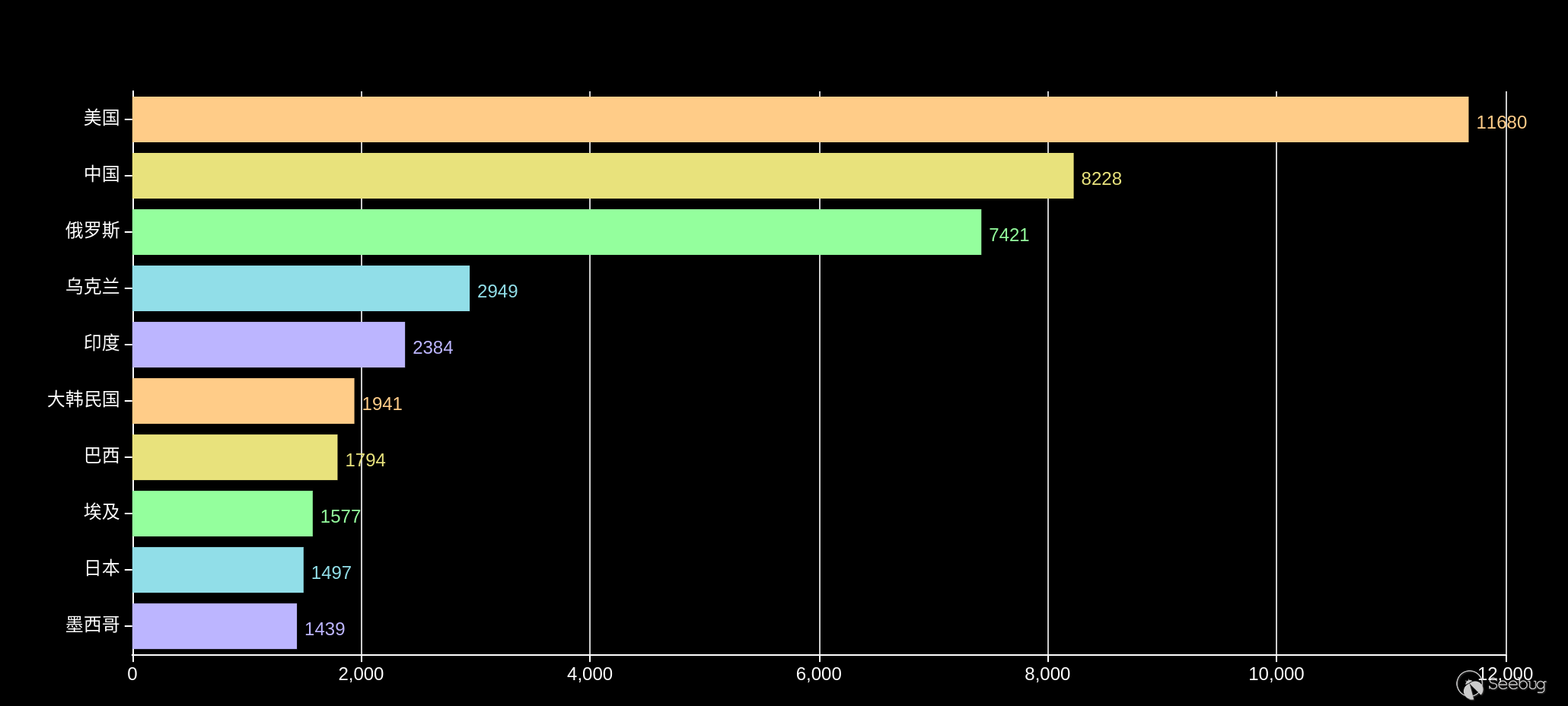 各國被植入 Doublepulsar 后門的設備數量對比: