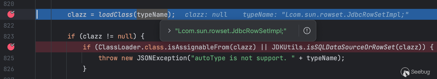 眼尖的師傅一眼就可以發現了,在此時的版本中 Fastjson2 并沒有對 L 和 ; 的場景進行處理。也就是我們在解析字符的時候,是可以傳入 Lxxxx; 的。那么此時Fastjson2能否正確解析類呢。