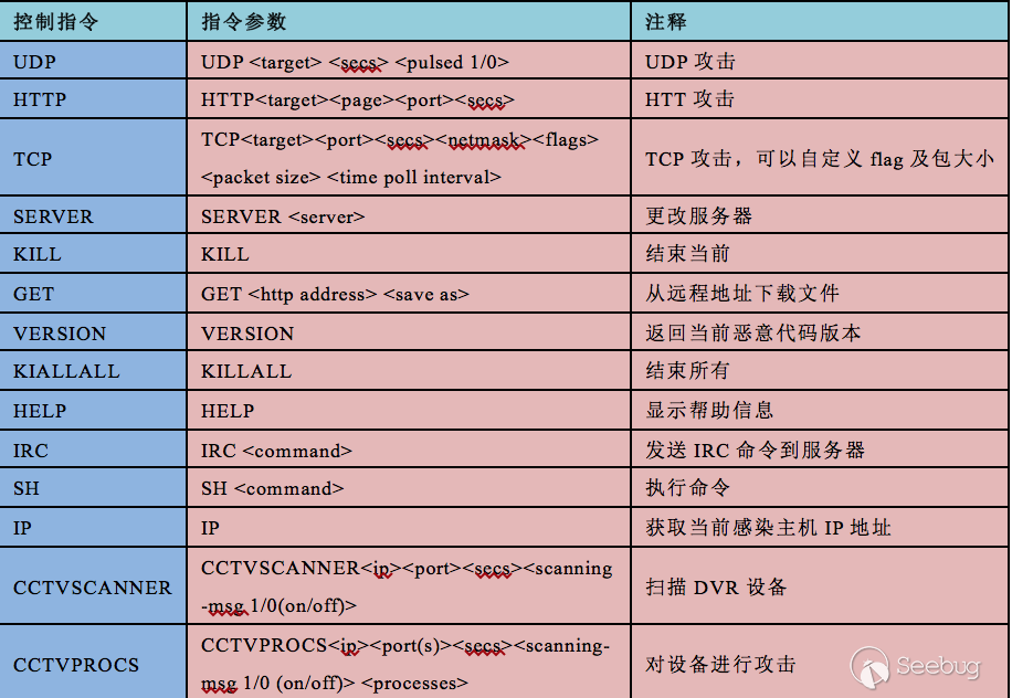 在控制指令中包括兩個特殊的指令CCTVSSCANNER和CCTVPROCS。其中,CCTVSSCANNER用來掃描DVR設備,CCTVPROCS用來對存在漏洞的設備進行攻擊。