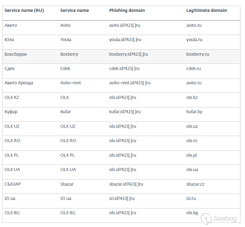 這些網絡釣魚域名不容易被發現。通常情況下,Neanderthals會注冊一個域名,然后為每個目標創建子域名,最終的URL以預期的品牌名稱開頭。在表1中可以注意到,僅有一個域名 - olx.id7423.ru - 用來瞄準受歡迎的市場OLX。OLX市場的合法域名示例是olx.ua。簡而言之,他們通常使用.ru作為其頂級域名,并將二級域名移至三級域名的位置。