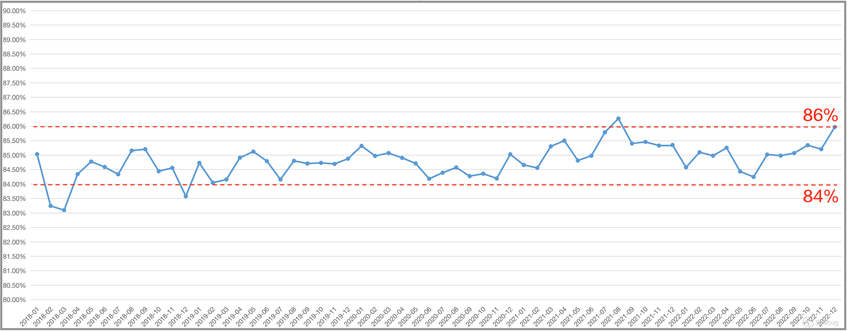 序號 1 代表2018年1月至2019年8月,比例均高于30%;2019年9月至2022年12月,比例均低于30%