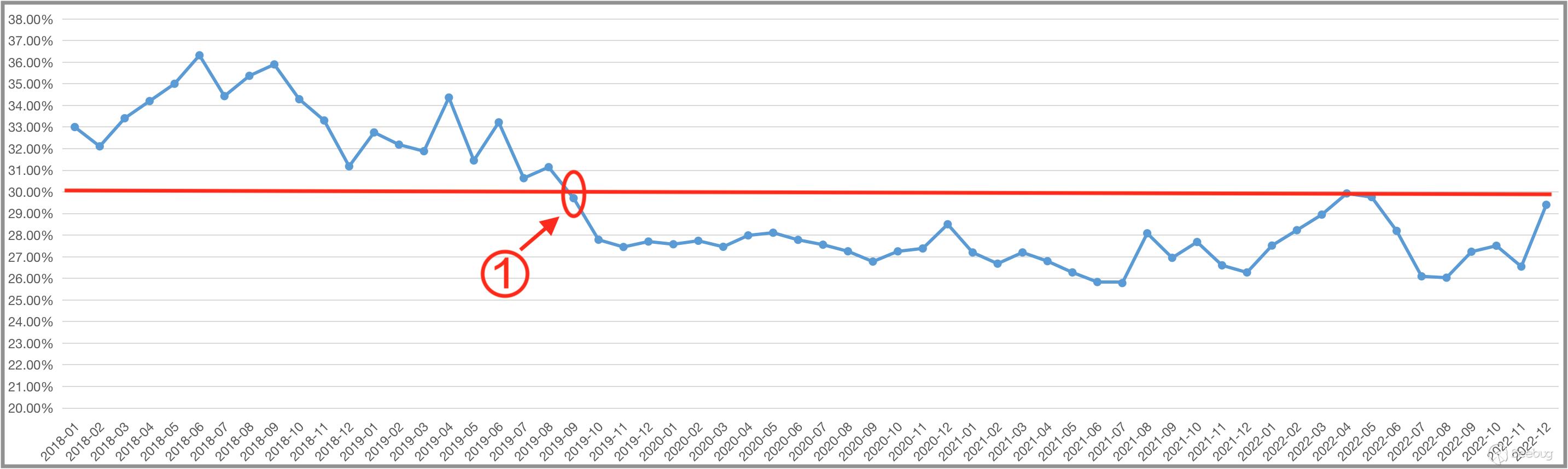 Note:Number 1 refer to From January 2018 to August 2019, the proportion remained above 30%.From September 2019 to December 2022, the proportion remained below 30%.