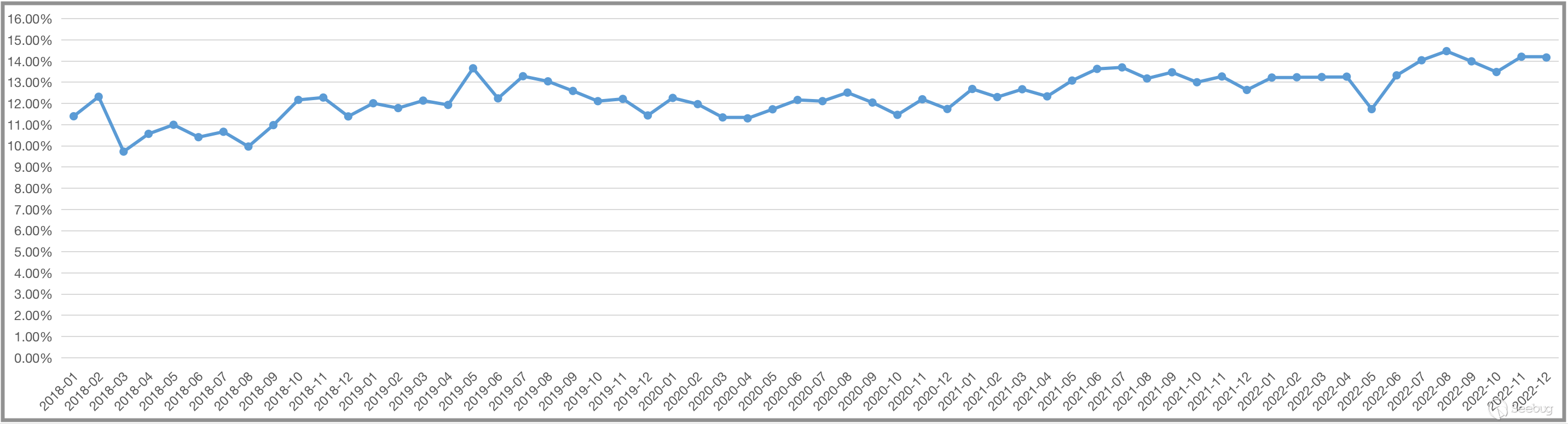 By observing the trend, we find that from January 2018 to August 2019, the proportion of online IP counts for the United States consistently exceeded 30%. From September 2019 to December 2022, it remained below 30%. This trend does not signify a decline in the United States' internet development level but rather indicates that, comparatively, other countries' internet development levels have been improving, narrowing the gap with the United States.