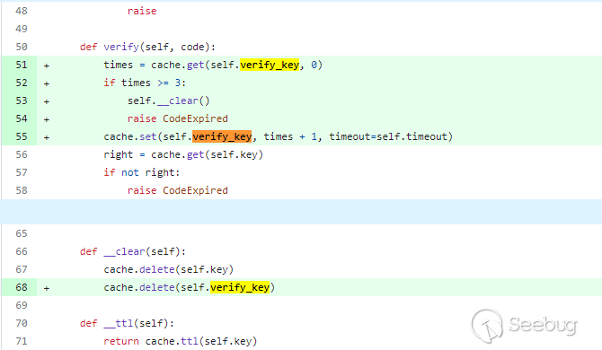 官方對于這個漏洞的修復方法是,在驗證Verify Code的時候限制次數,超過三次則強制過期這個Code:
