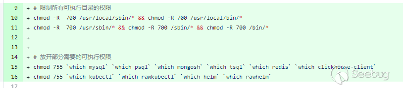 官方對于該漏洞的修復方式是限制Linux主機上各種命令的執行權限: