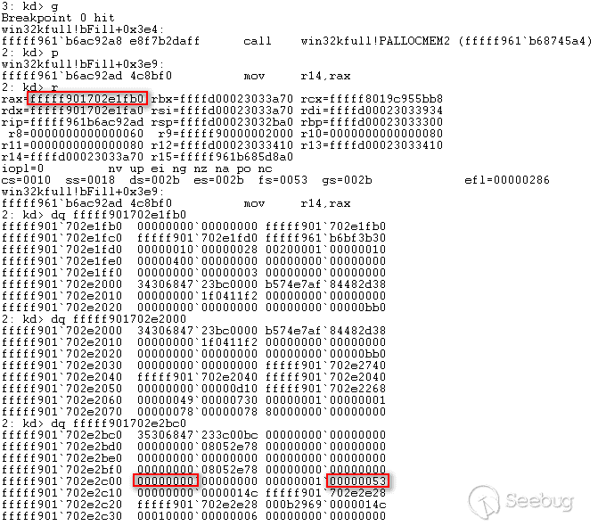 pool header ,在 bFill 函數的結尾執行 Win32FreePool 時導致了 BSoD.