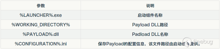%LAUNCHER%.exe? %WORKING_DIRECTORY% %PAYLOAD%.dll? %CONFIGURATION%.ini。