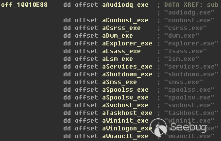 此外,該擦除模塊還存在一個白名單的進程列表,為了防止意外發生,其不會對這些進程進行強制關閉的操作。擦除模塊內置的白名單進程列表如下。