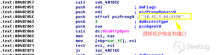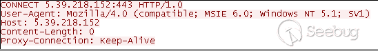 Main Backdoor 模塊連接 C&C 是通過跳板機(10.15.1.69)來實現與 C&C 5.39.218.152 通信的,通信的端口為 443 端口,據 ESET 報告,與 C&C 通信的數據采用了 HTTPS 。