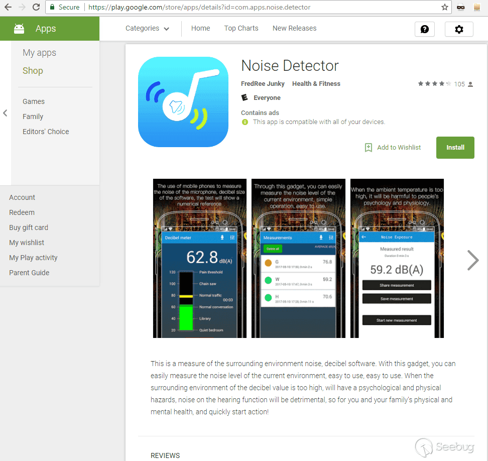 第二個應用程序,應用名為 “Noise Detector” ,具有相同的惡意功能,安裝了10,000次以上。