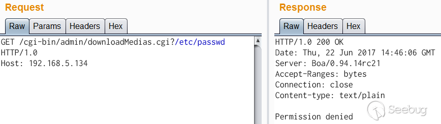 這里的 query_string 居然是絕對路徑,嘗試讀取 /etc/passwd ,返回 "Permission denied" :