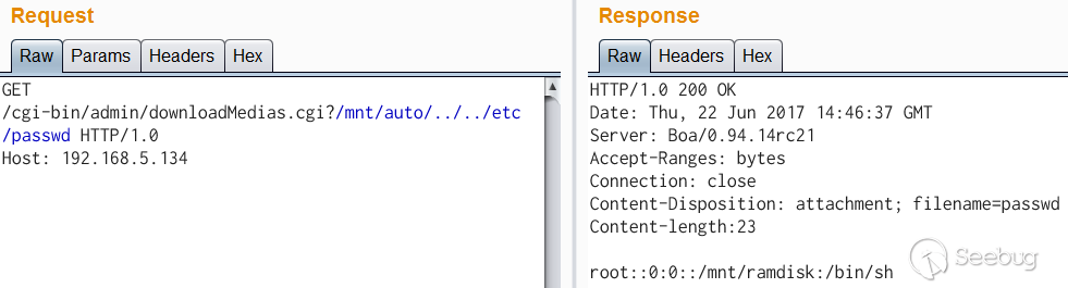 /bin 里只有 busybox 是真的 ELF ,其他都是假的,全都是到 busybox 的軟鏈接; /sbin 里有一些廠商編譯的 ELF ,用于攝像頭的各種配置,其他也都是到 /bin/busybox 的軟鏈接; /usr/bin 里有很多廠商寫的 shell 腳本,也是用于攝像頭的配置; /usr/share/www/cgi-bin 里是 cgi 們,有很多是 shell 腳本,一部分是 ELF 。這些 shell 腳本很多都把用戶輸入帶入命令去執行,或者是作為參數傳遞給專門處理某項配置的 ELF 。既然能訪問到 Web 服務,那就從這些 cgi 入手好了。